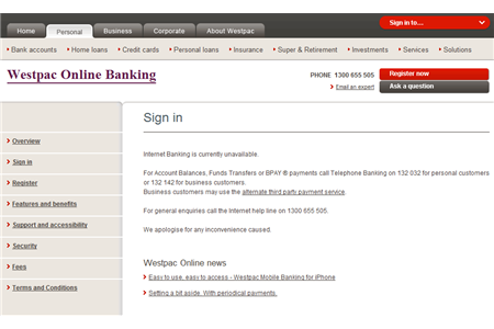 In the past the Westpac online service has been down for days but despite a multimillion dollar upgrade and the introduction of a brand new site in 2009.